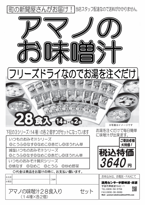 ★リピーターの多い「アマノのお味噌汁」は常時販売しております。